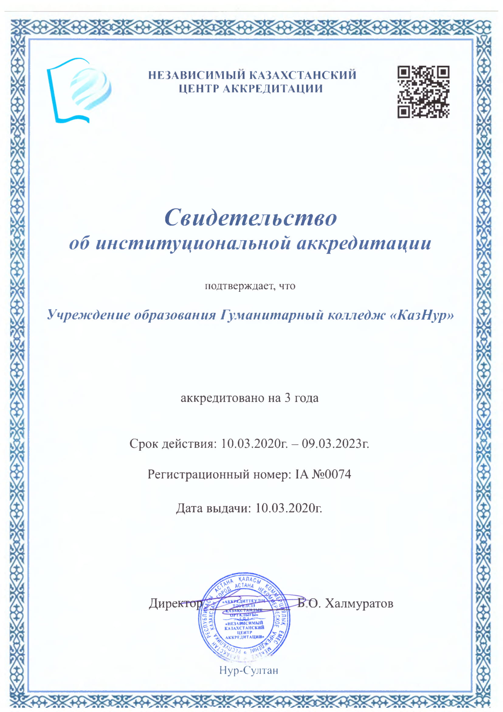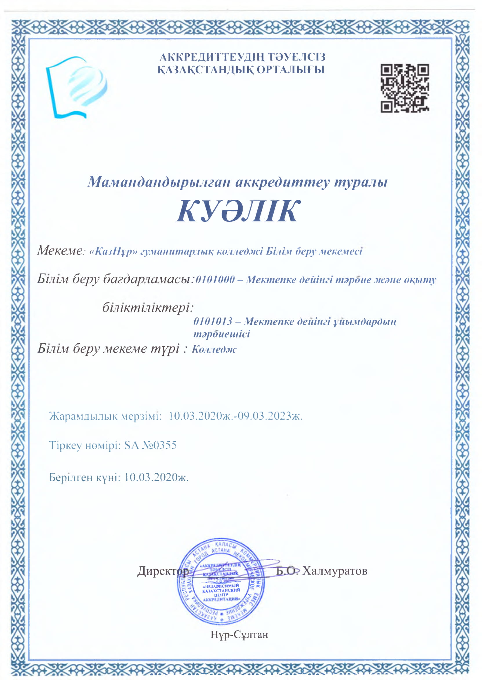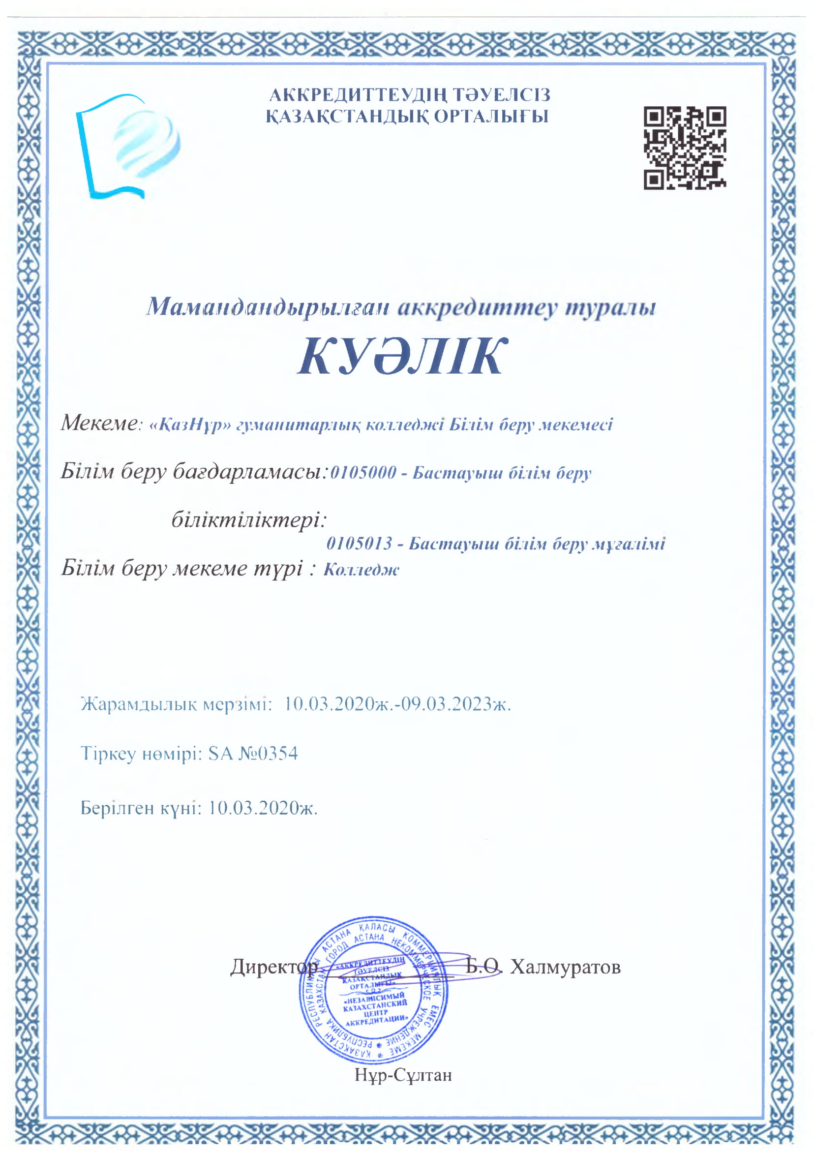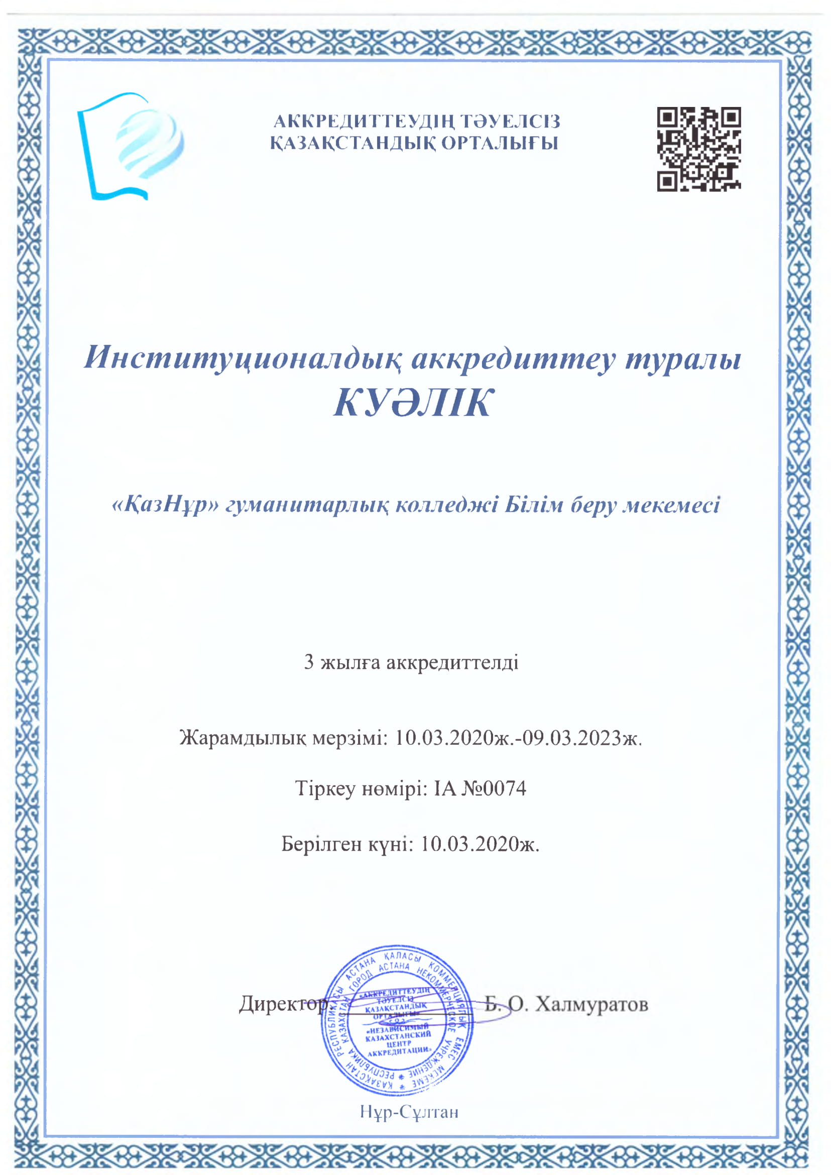 «ҚАЗНҰР» гуманитарлық колледжі - білім беру мекемесі