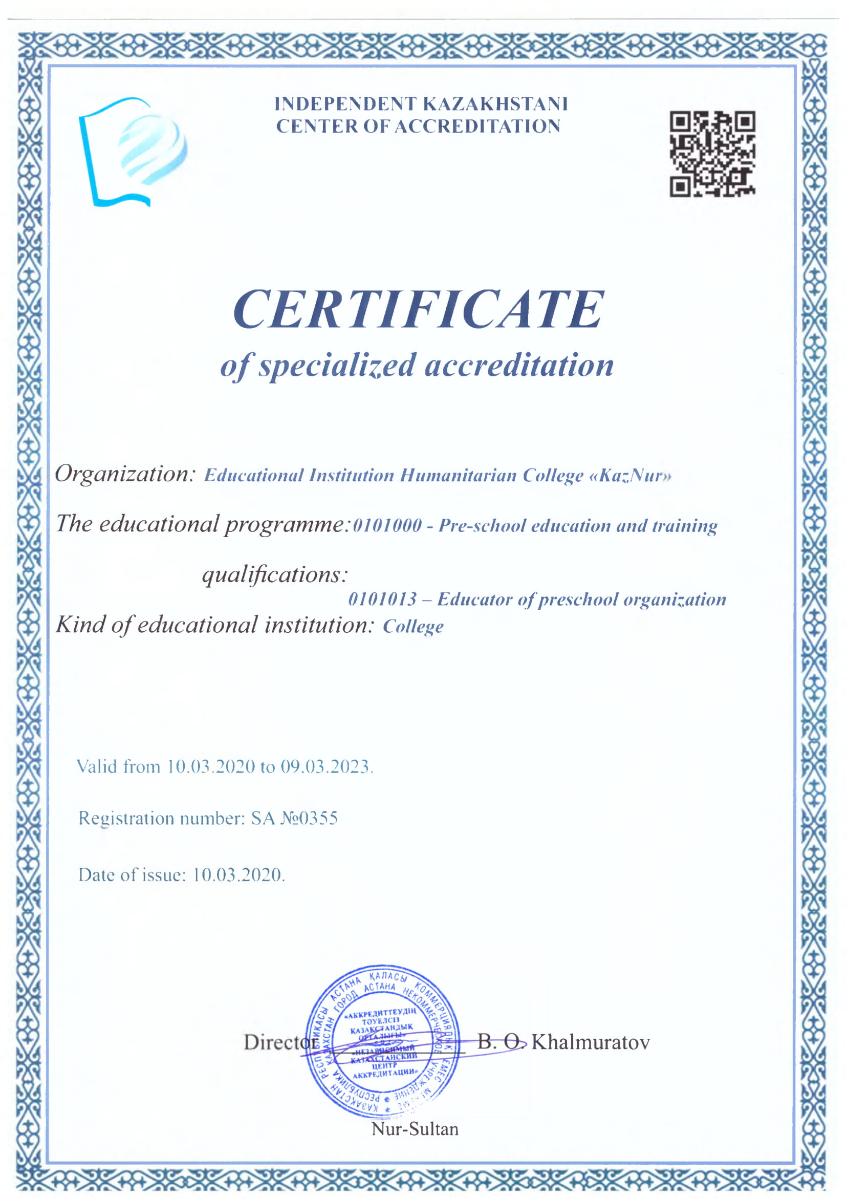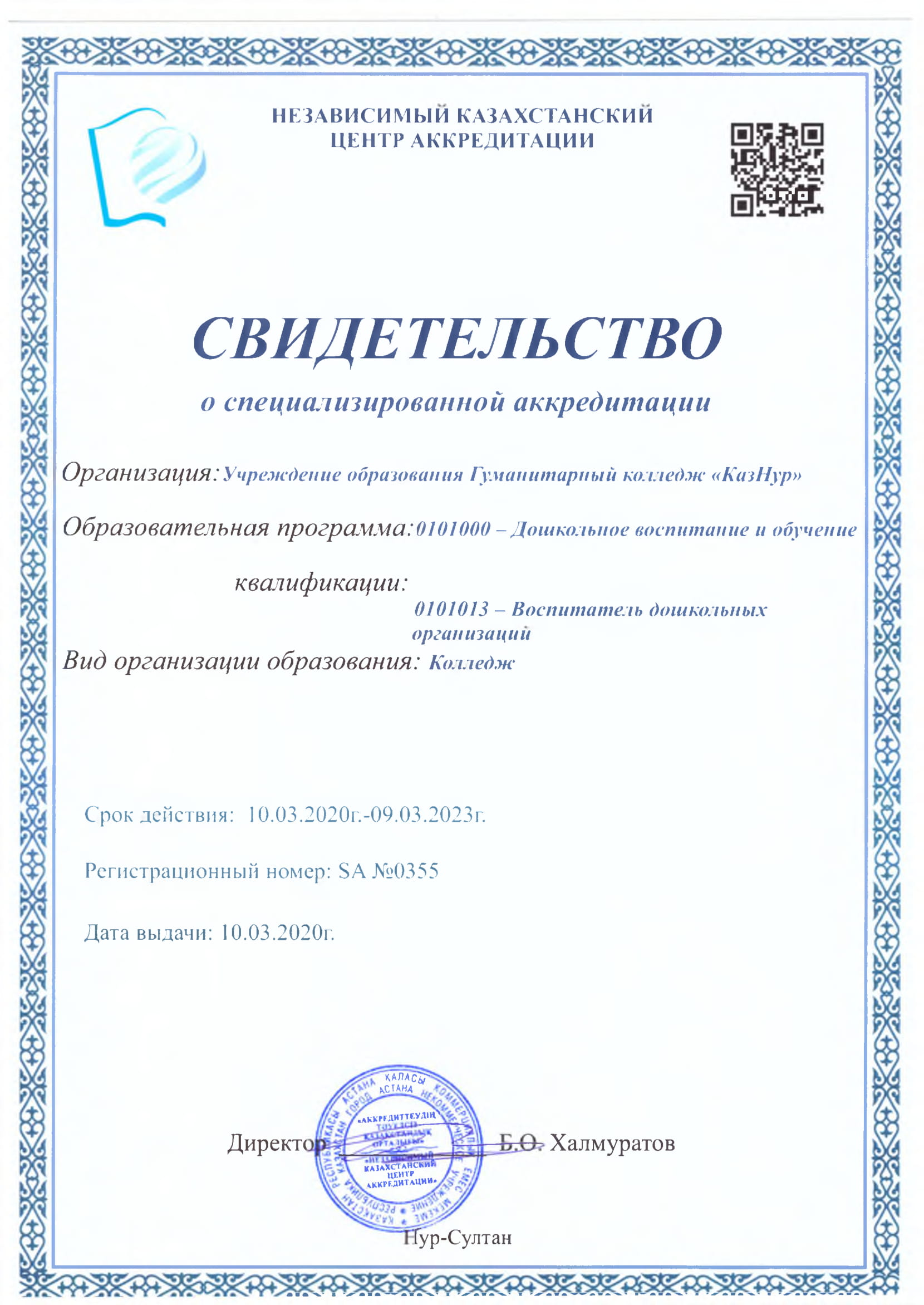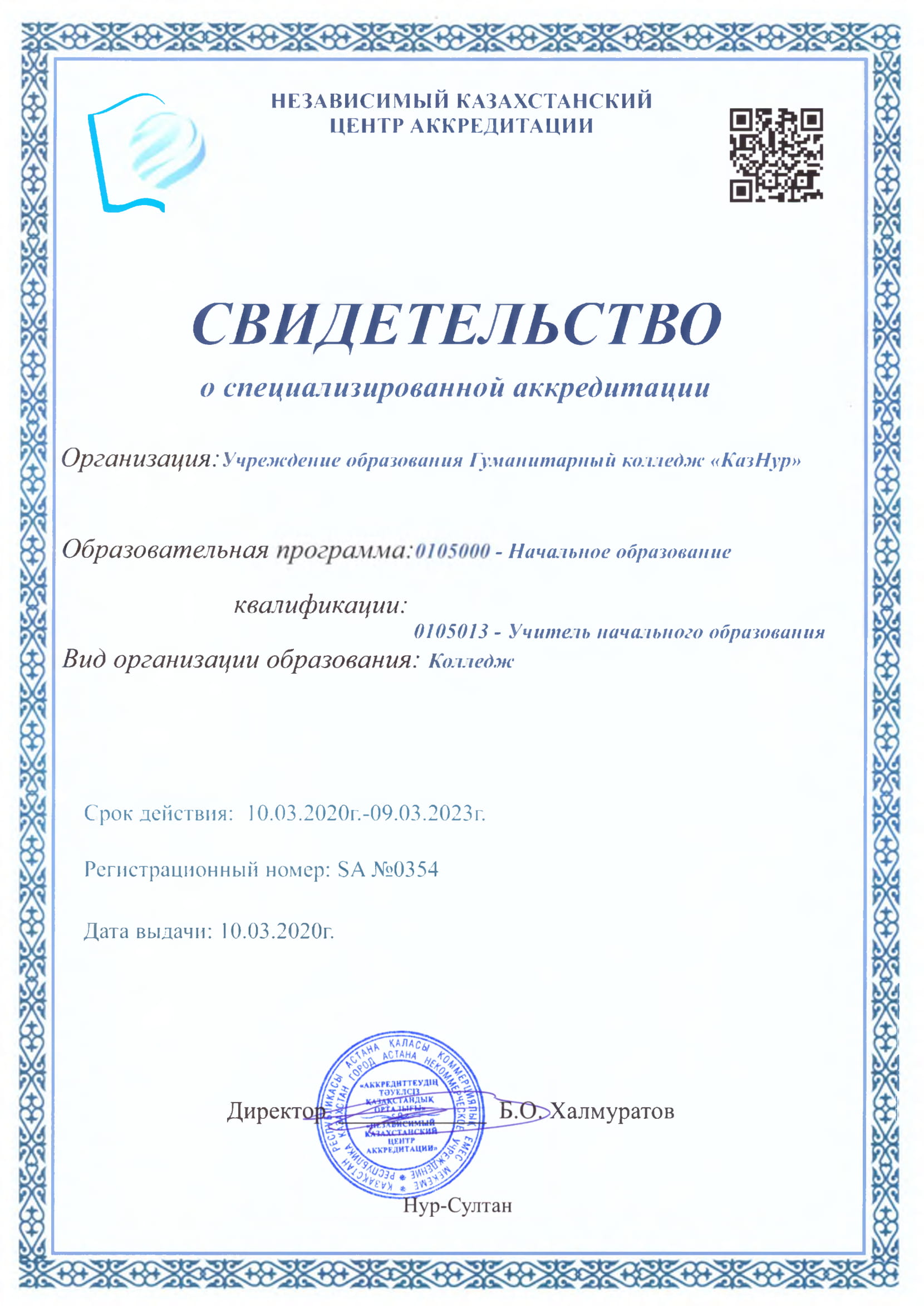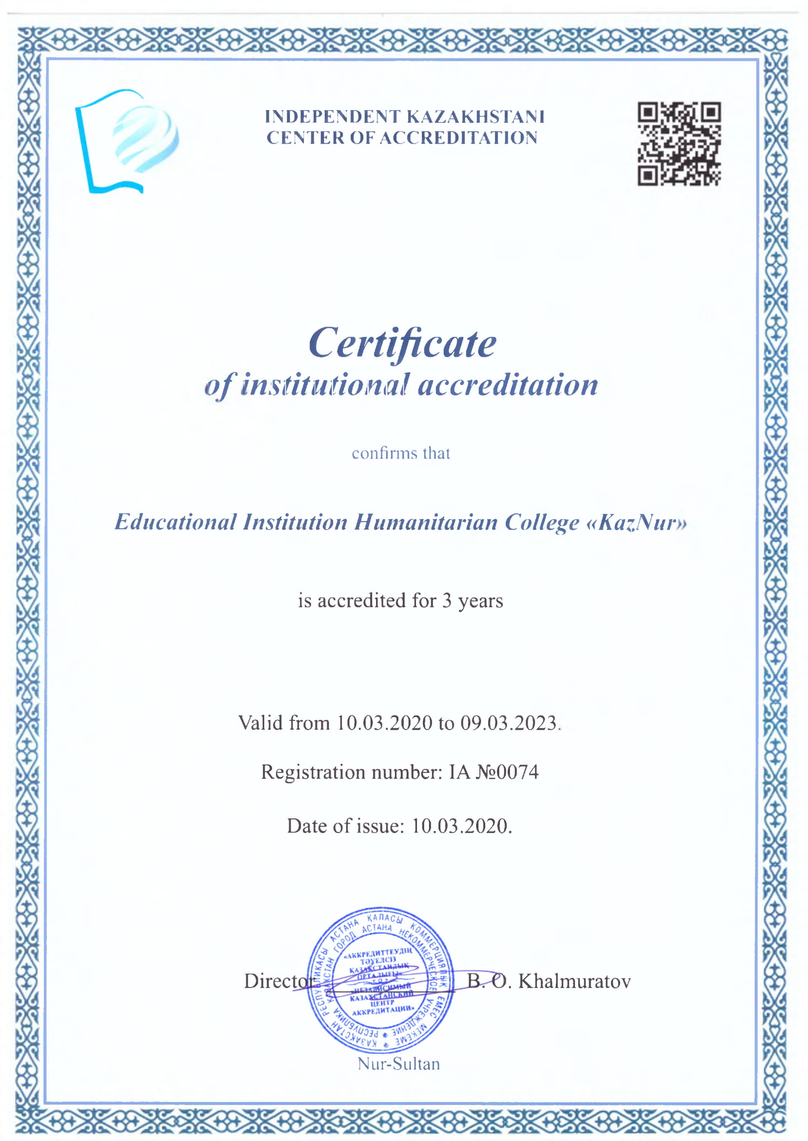 «ҚАЗНҰР» гуманитарлық колледжі - білім беру мекемесі