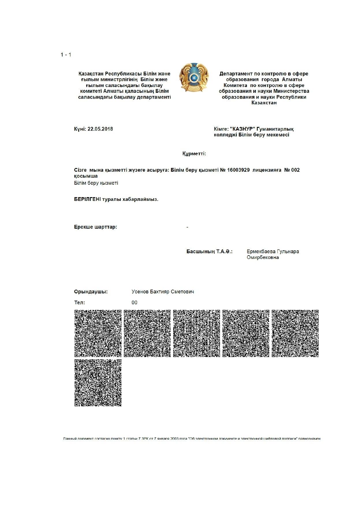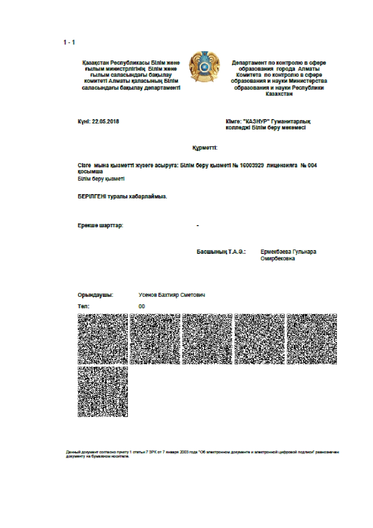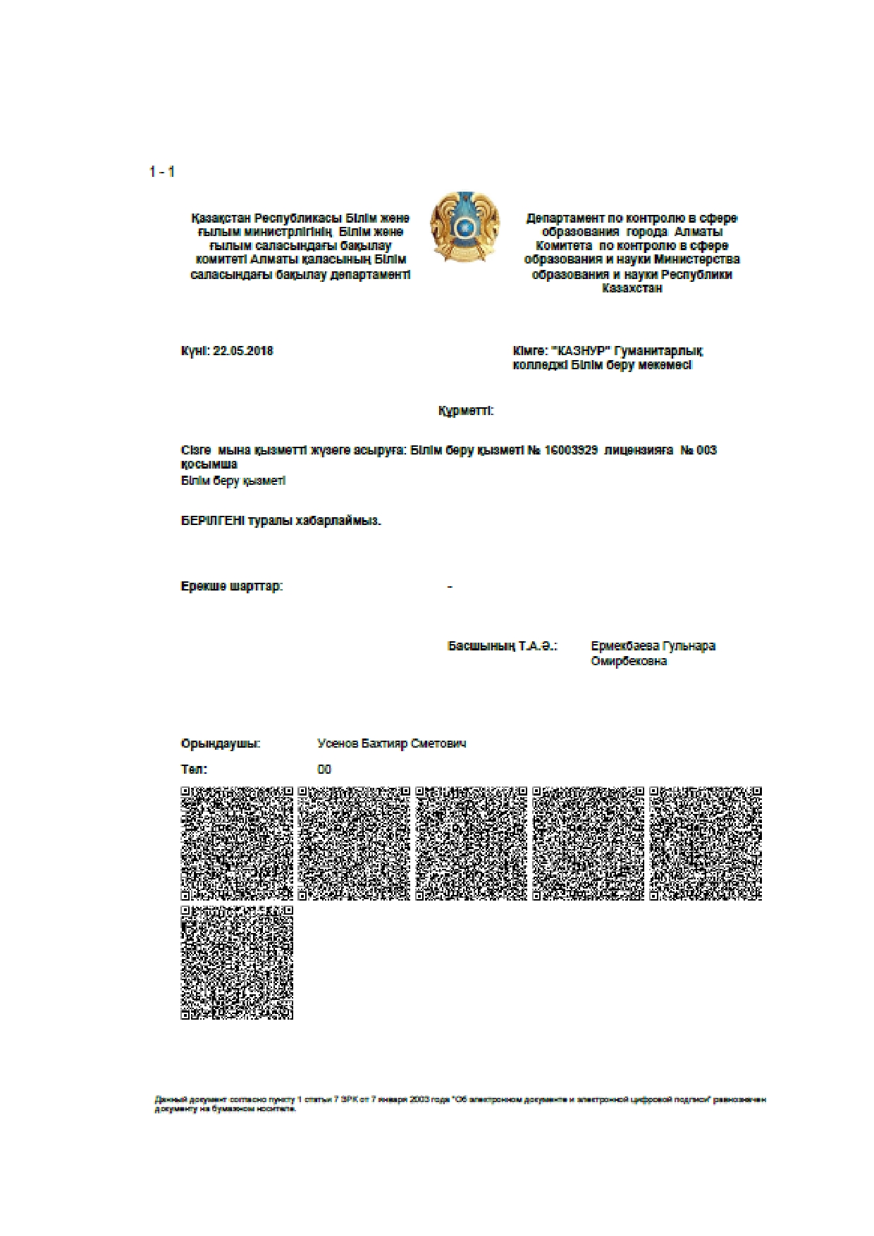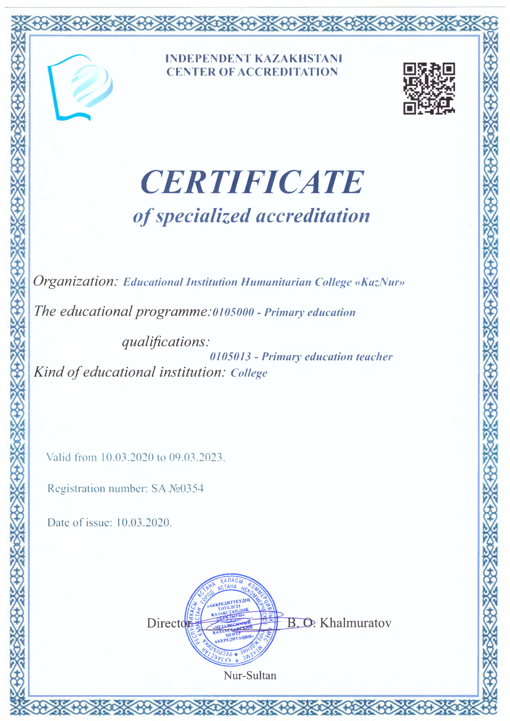 «ҚАЗНҰР» гуманитарлық колледжі - білім беру мекемесі