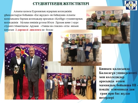 Алматы қаласы Еуразиялық аграрлық колледжінің ұйымдастыру бойынша «Танцы на стеклах» атты әнімен |